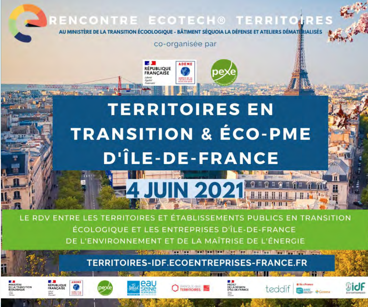 Pexe » Evénements » Rencontre Territoires en Transition & Éco-PME d’Île-de-France Rencontre Territoires en Transition & Éco-PME d’Île-de-France Le 04 juin 2021 Ministère de la transition écologique et ateliers dématérialisés Mise à jour : 10 février 2021